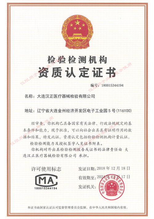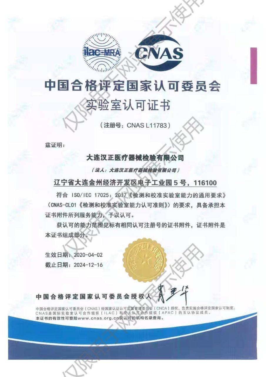 大连汉正医疗器械检验有限公司(以下简称实验室)是以医疗器械检验检测为专业特长的第三方检测检验机构。现有检测仪器设备及设施原值达千余万。现有一支由资深博士带领,多名国内检验检测业界资深专家作技术支撑,硕士、本科各层检测技术人员队伍。目前检验检测范围覆盖无源医疗器械产品的物理、化学、微生物性能、无菌医疗器械包装以及洁净室(区)环境等检验检测及技术服务等工作······(了解更多详情)